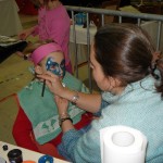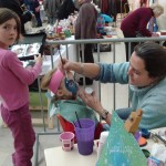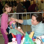 Et comme les enfants adorent se faire maquiller, un atelier a été installé spécialement à leur intention. Lilou prête son visage au soin d’une maquilleuse. Très sérieuse elle ne bouge pas le temps de la démonstration.