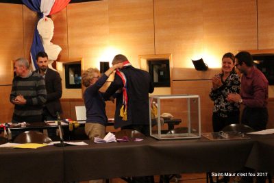 et 28 bulletins plus tard, Ludovic Réau est déclaré Maire et Josette lui passe la traditionnelle écharpe tricolore.